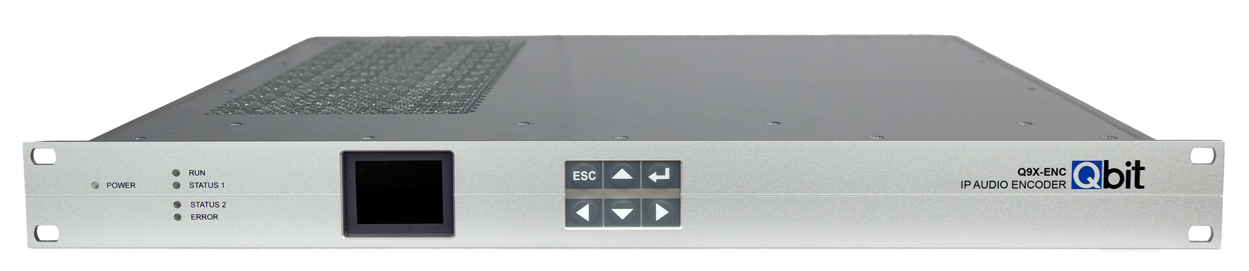 The Q9X-E IP Audio Encoder features MPEG-4 Advanced Audio Coding (MPEG-4 AAC) and MPEG-1 Layer 2 encoding capabilities. All of the common bit rates and sample rates are offered to enhance the IP delivery of Audio.